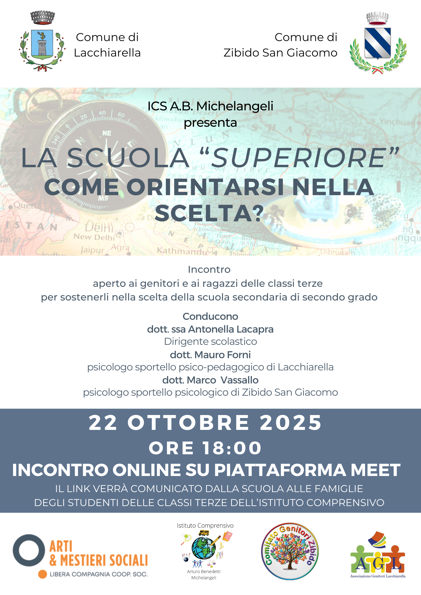 - Destinatari: Incontro aperto ai genitori e ai ragazzi delle classi terze dell’Istituto Comprensivo.